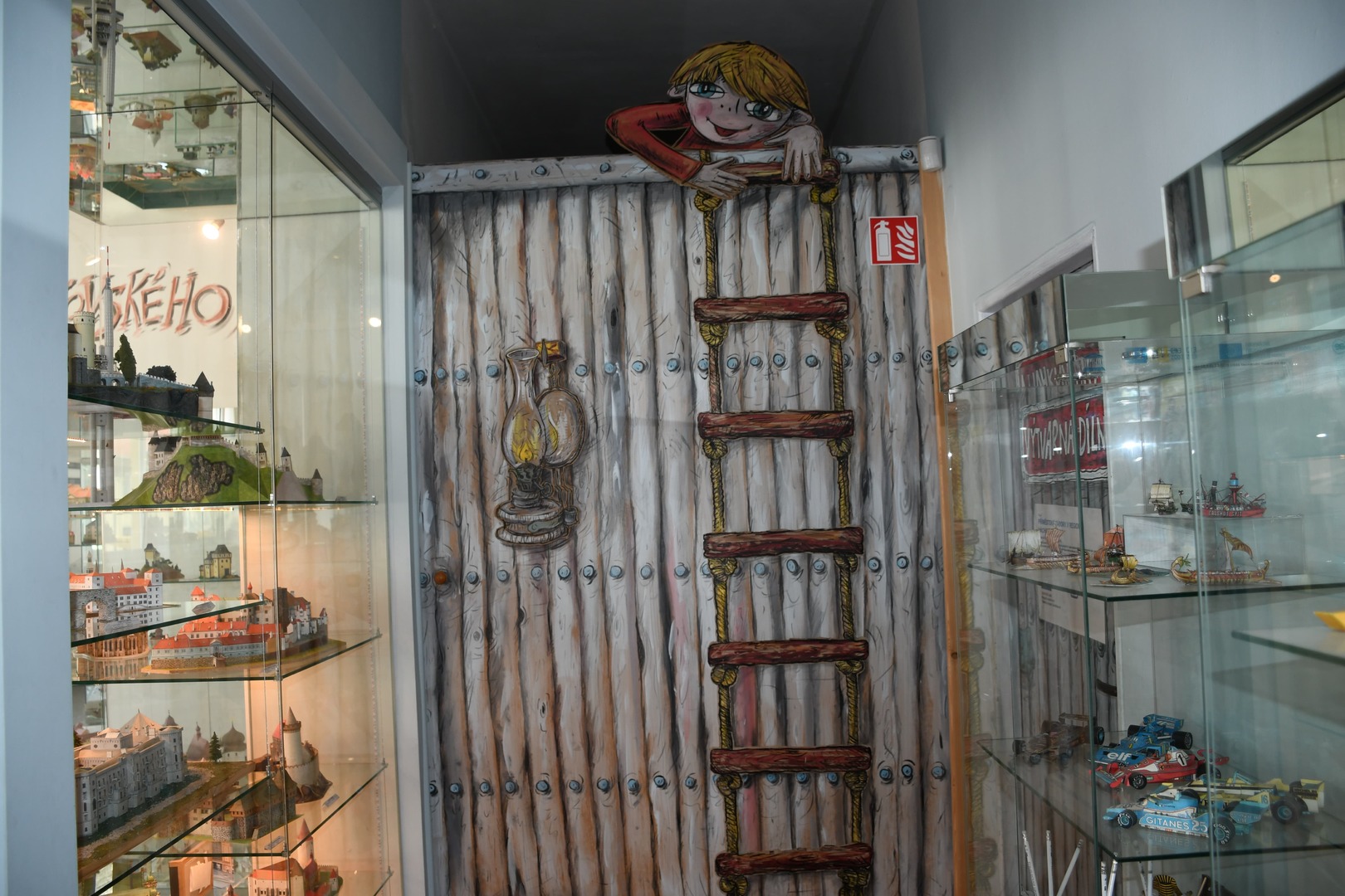 Těšit se můžete i na mořské pobřeží s majáky a přístavy. Také na kolejiště s vláčky a rozhlednami z celé ČR. Dále zde uvidíte nástěnnou prezentaci současných trendů, obrazový, plakátový i textový materiál o vzniku a vývoji papírového modelářství, ukázky tiskových archů, malířské originály a další vystřihovací propozice našich i zahraničních autorů. Pro zájemce je připraven i stůl, papír, nůžky a lepidlo. Zkuste si vystřihnout a slepit na památku vlastní model. Školní třídy a skupiny návštěvníků mohou absolvovat interaktivní program různé úrovně podle věku a schopností účastníků.